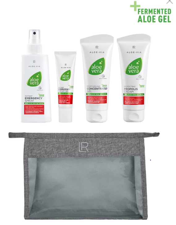 La box est composée de produits à l'aloe vera pour toutes les situations du quotidien, utilisables pour les humains et animaux: